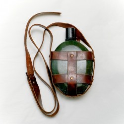 상해의거에 사용된 수통폭탄 모형이다. "알루미늄제의 수통형 폭탄은 가죽제 끈을 달아 어깨에 메도록 제작되었다. 수통 입구 부분에 기폭장치인 신관이 있고 수통 마개를 열면 발화용 마(麻)끈이 부착되어 있다."고 일본육해군성 문서인 「상해홍구공원에서의 폭탄투척사건관련 상해총영사 보고」(1932.5.3.)에 적혀 있다. |